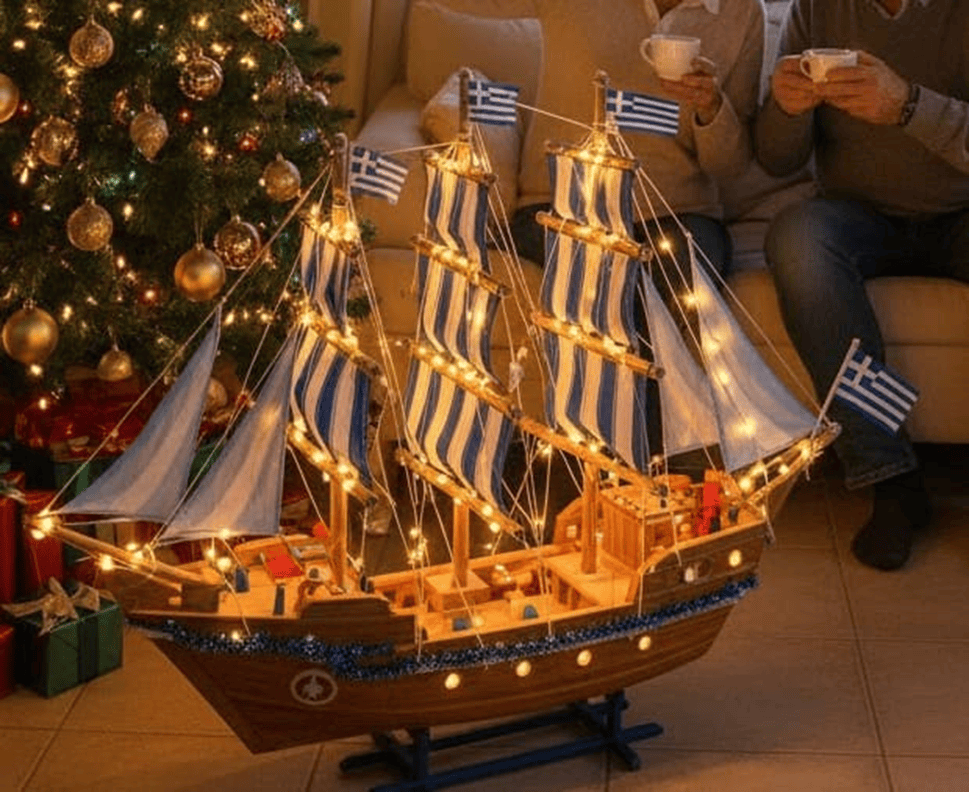 Before the Christmas tree became popular in Greece, especially on the islands and in coastal towns, families would decorate a boat with lights and ornaments to symbolize safe voyages and welcome returning sailors. Even today, many Greeks decorate both a tree and a boat during the holiday season.